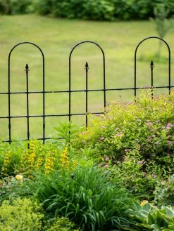 This flat-back trellis adds a sculptural element to your landscape and is perfect for flowering vines like clematis and morning glories, as well as climbing roses. The half-round style is designed to stand against a wall. Resembling wrought iron with a classic ball-finial design, the strong geometric lines and rich, matte-black finish of our exclusive Essex Trellises bring stately sophistication to your garden.