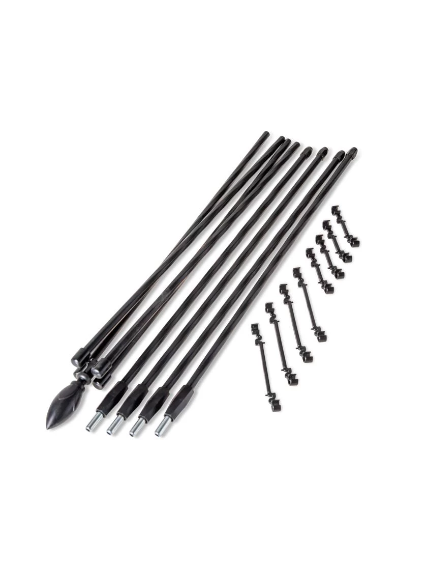 This perfect pot trellis with a classic teardrop topper adds a touch of grandeur without a luxury price tag. A lovely showcase for container-loving vines like mandevilla, and sweet pea, and black-eyed Susan vine, the 4 stakes provide a good number of skyward routes, and helpful swirl patterns on the stakes help vines grow and stay attached. Poly-coated steel frame and UV-stabilized plastic connectors are durable enough for year-round use. String with lights in winter to keep containers merry and bright through the dormant months. Super easy, no-tool assembly.