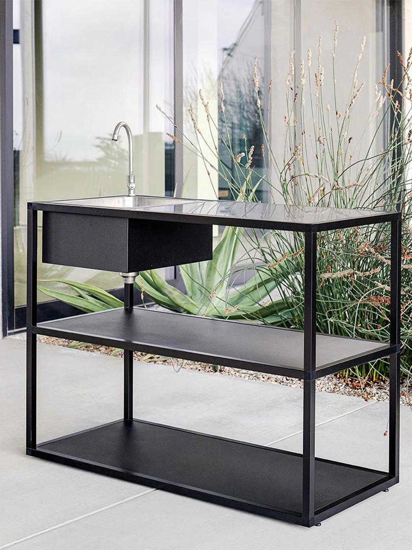 Maximize your time in the outdoors! With Veradek Outdoor Kitchen modules, you can design the perfect kitchen to fit your unique outdoor space. Made from a sturdy, corrosion resistant aluminum frame and protected by a strong, scratch-powdercoat, Veradek Outdoor Kitchen modules are built for the outdoors. Featuring a stainless steel faucet and an 8-inch-deep stainless steel sink, quick hand washes and dish rinses have never been so convenient. Installation is quick and easy and does not require a professional – simply connect the faucet to a nearby hose and connect the drain tube to a pail or catch basin and your outdoor clean-up station is ready to go. In addition, all Kitchen Counter modules come equipped with a durable, food-safe brushed stainless steel countertop that is easy to clean and maintain. Best of all, all Veradek Kitchen pieces are modular, allowing you to mix and match modules to create a kitchen to perfectly fit your unique patio or deck area. Get your outdoor party started with a Veradek Outdoor Kitchen!