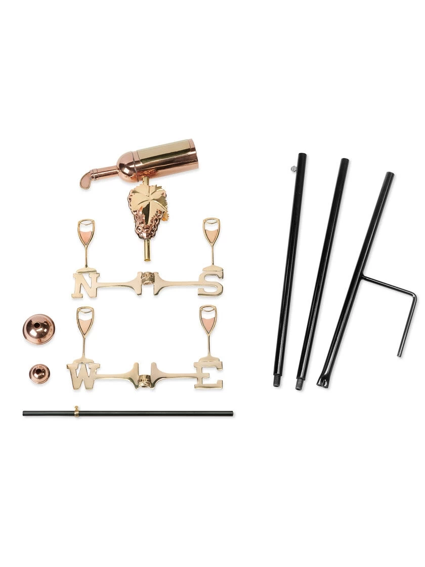 There’s no better way to show off your refined taste than by raising this elegant wine bottle weathervane filling four goblets to adorn the rooftop of smaller structures, sheds, and gazebos. For over 35 years Good Directions pure copper Weathervanes have been unsurpassed in style, quality, and durability – perfect for the house-proud homeowner. Bring the Joy of Outdoor Living℠ to your home with this heirloom-quality piece. It is also perfect for your garden landscape. 3-piece pole mount included. Lifetime Warranty. The pure copper will age naturally over time.